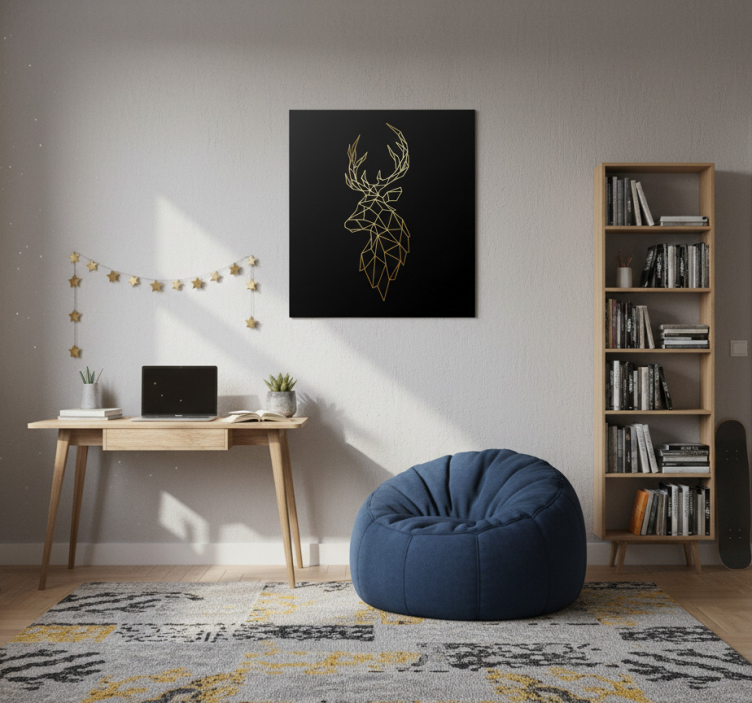 Aplicar o Poster sala poster para sala ciervos de origami dourados na tua decoração é simples e divertido. Pode ser colocado numa parede de destaque ou combinado com outros elementos decorativos, criando um cenário único e harmonioso. Deixa a tua criatividade fluir e transforma o teu lar num espaço inspirador!