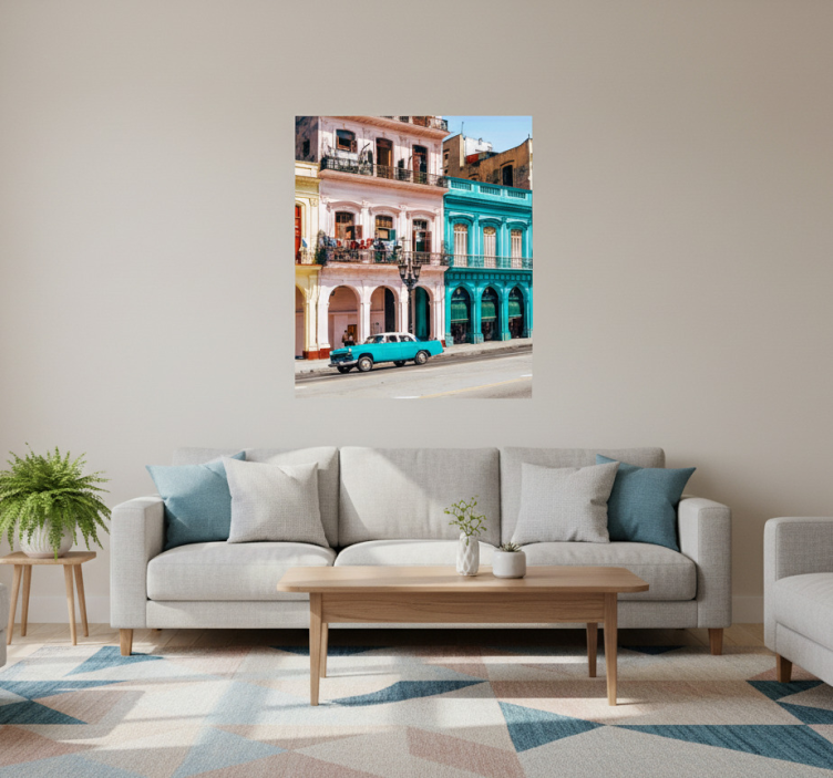 Para aplicar o Poster sala poster para sala com design de rua e carros azul e rosa, basta escolher o local ideal na tua parede e usar a técnica que melhor se adapta ao teu espaço. A instalação é simples e rápida, permitindo que a tua sala ganhe vida em poucos minutos!