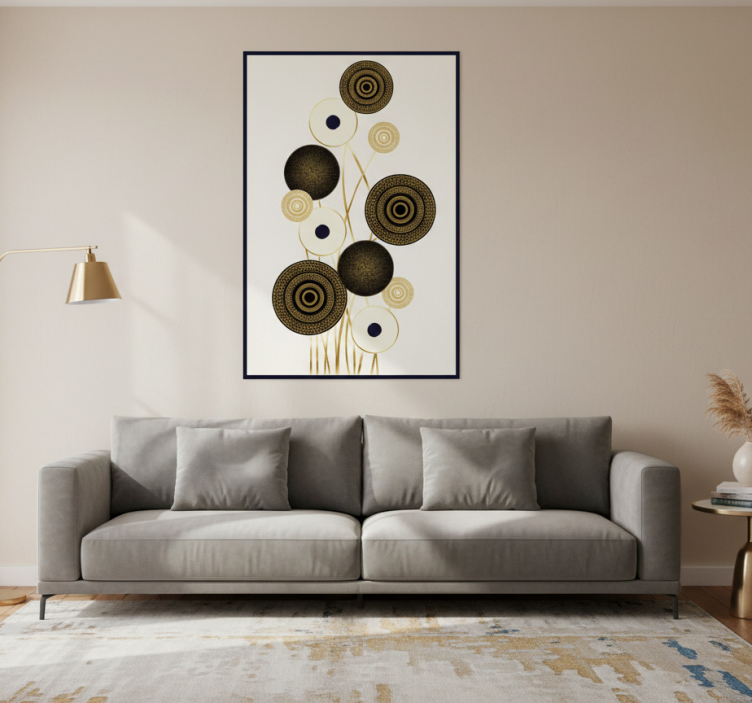 Para aplicar o Poster sala poster para sala decoração glamourosa com círculos, basta escolher o local ideal na parede e fixá-lo facilmente. A sua montagem é rápida e prática, permitindo que transformes o ambiente em poucos minutos. Uma ótima maneira de dar vida ao teu espaço!
