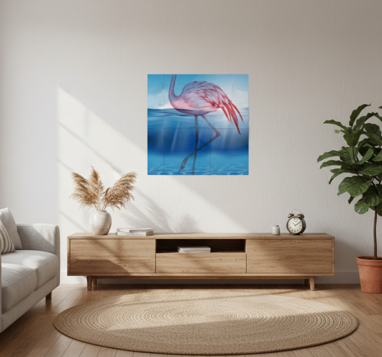 Para aplicar o Poster sala poster para sala design subaquático de flamingo, basta escolher um local de destaque na tua sala que mereça um toque especial. A sua montagem é simples e rápida, permitindo que transformes o ambiente de forma prática e sem complicações. Encanta-te com a facilidade de dar nova vida ao teu espaço!