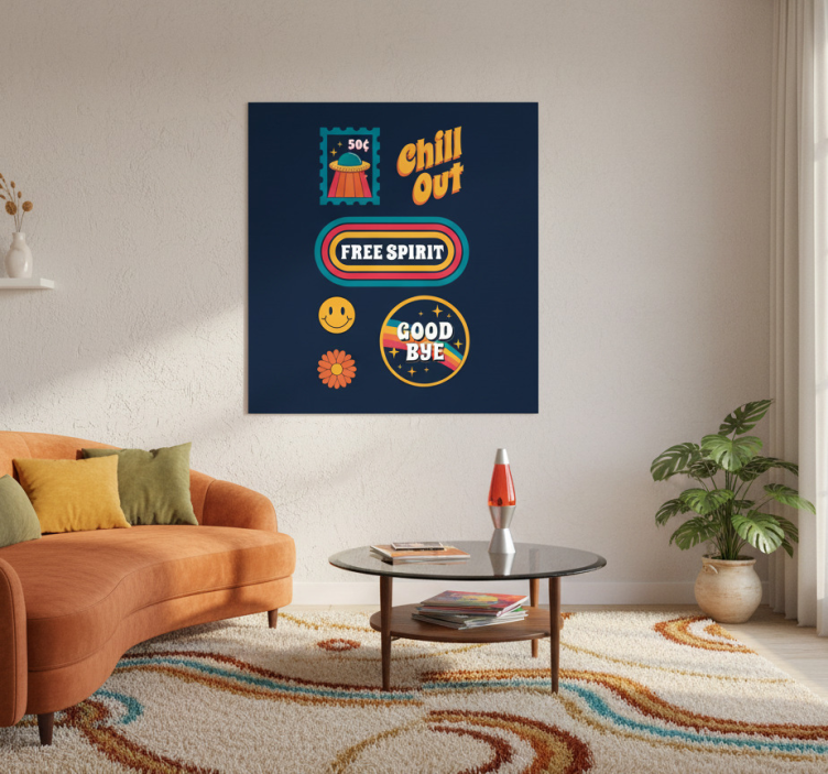 Para aplicar o Poster sala poster para sala diversão e descontração dos anos 70, basta escolher um espaço de destaque na tua parede. A sua instalação é fácil e rápida, permitindo que desfrutes da nova decoração em instantes. É uma forma simples de adicionar um toque especial à tua sala!
