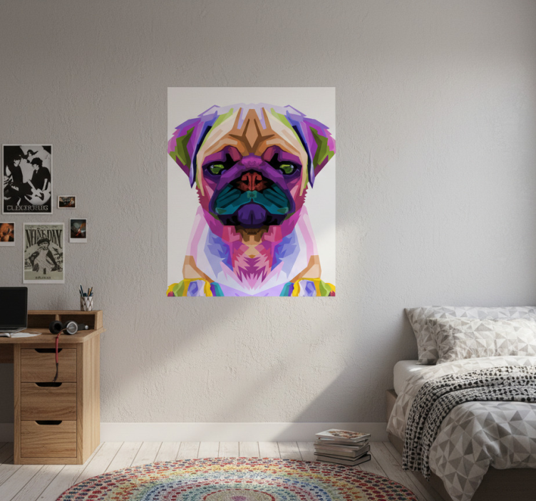 Para integrar facilmente o Poster sala poster para sala pug em pop art na tua decoração, basta escolher um local de destaque na parede. Usando um suporte adequado, fixa-o com simplicidade e aprecia a transformação instantânea que ele proporciona ao ambiente!