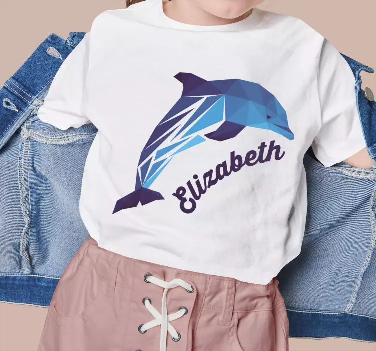 Referência: T4981Este design vibrante apresenta um golfinho geométrico estilizado, simbolizando diversão e alegria. O nome centralizado abaixo adiciona um toque pessoal, tornando-o perfeito para crianças pequenas. As cores azuis frescas realçam a aparência animada, tornando-o adequado para várias ocasiões casuais.