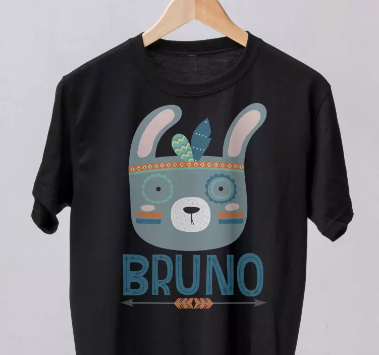 Referência: T4967Este design encantador apresenta um adorável rosto de coelho com elementos decorativos como uma pena e marcas coloridas. O nome 'Bruno' adiciona um toque personalizado, tornando-o uma escolha deliciosa para crianças. Suas cores brincalhonas e caráter fantasioso atraem um público mais jovem.