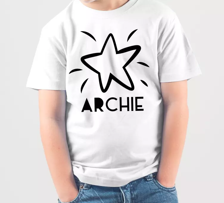 Referência: T4337Este design vibrante apresenta uma estrela alegre e o nome 'Archie' em destaque. Perfeito para crianças, adiciona um toque lúdico e celebra a individualidade, tornando-se uma escolha ideal para ocasiões memoráveis. O contraste marcante garante que se destaque de forma linda.