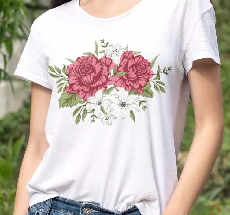 Referência: T4320Este design apresenta rosas e lírios em flor, simbolizando beleza e elegância. As cores vibrantes se destacam, criando um apelo visual marcante. Perfeito para o uso casual, ele exibe uma mistura harmoniosa de elementos florais, tornando-se uma escolha ideal para quem deseja transmitir uma vibração fresca e animadora.