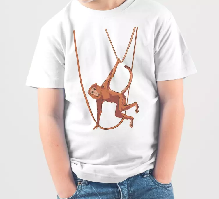 Apresentamos a T-shirt crianças macaco balançando na corda, uma peça cheia de alegria e diversão! O design gráfico desta T-shirt traz um macaco brincalhão oscilante, capturando a essência da natureza e da diversão que as crianças adoram. Com uma ilustração vibrante, esta t-shirt é perfeita para os pequenos que amam expressar sua personalidade através das roupas!