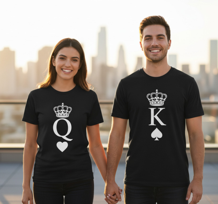 A T-shirt de casais rainha e rei para casais deve ser a escolha número um para quem quer celebrar o amor! Com um design que exalta a união e a cumplicidade entre o casal, esta peça traz um toque especial a momentos descontraídos. Seja numa saída romântica ou num encontro casual com amigos, vestir esta t-shirt é uma forma de mostrar ao mundo a vossa conexão. Sinta a alegria e a leveza que esta t-shirt proporciona, fazendo cada momento juntos ainda mais memorável!