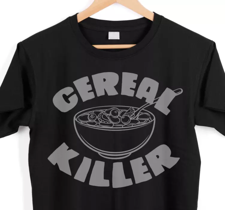 Esta incrível T-shirt estilo contemporâneo é perfeita para adicionar um toque de humor ao seu guarda-roupa. Com uma cor preta elegante e o texto 'matador de cereal' escrito em destaque, esta T-shirt personalizada é ideal para ter, pois possui um trocadilho engraçado que certamente irá arrancar sorrisos de todos.
