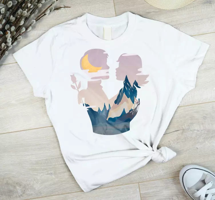 Apresentamos a T-shirt mães e filhas silhueta de conexão, uma peça única que celebra o laço especial entre mães e filhas. Com um design gráfico de inspiração nipônica, esta t-shirt combina elementos da natureza, como a lua e as montanhas, em uma ilustração que expressa amor e ternura. É uma forma encantadora de mostrar a conexão que existe entre um casal tão especial, refletindo a beleza do laço familiar em cada detalhe!