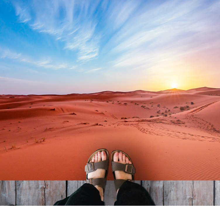 Obtenha este produto e aprecie a aparência de seu piso. Mude a estética e descubra algo diferente em sua casa. Isto é mais do que uma simples decoração. Este produto é feito com os melhores materiais disponíveis no mercado. Isso ficará ótimo em qualquer sala. Use-o em sua sala de estar, quarto, banheiro ou até mesmo na cozinha. Coloque-o no chão para proteger e embelezar. É feito com materiais duráveis e possui efeito anti-derrapante. Uma paisagem natural que ficará ótima. Tapete de vinil da paisagem do deserto com céu de sonho.