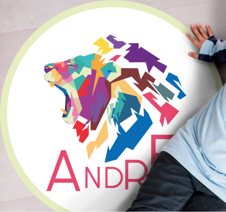 Este produto tem um fundo branco com uma vista lateral geométrica de um leão que ruge e um nome que pode ser personalizado com o nome que desejar.