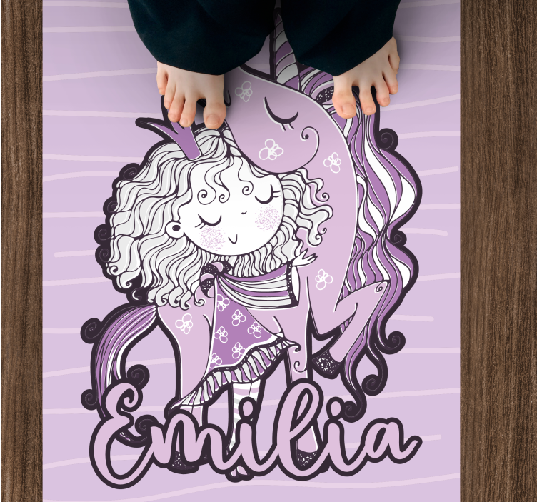 Princesa artística com tapete de vinil personalizado de unicórnio