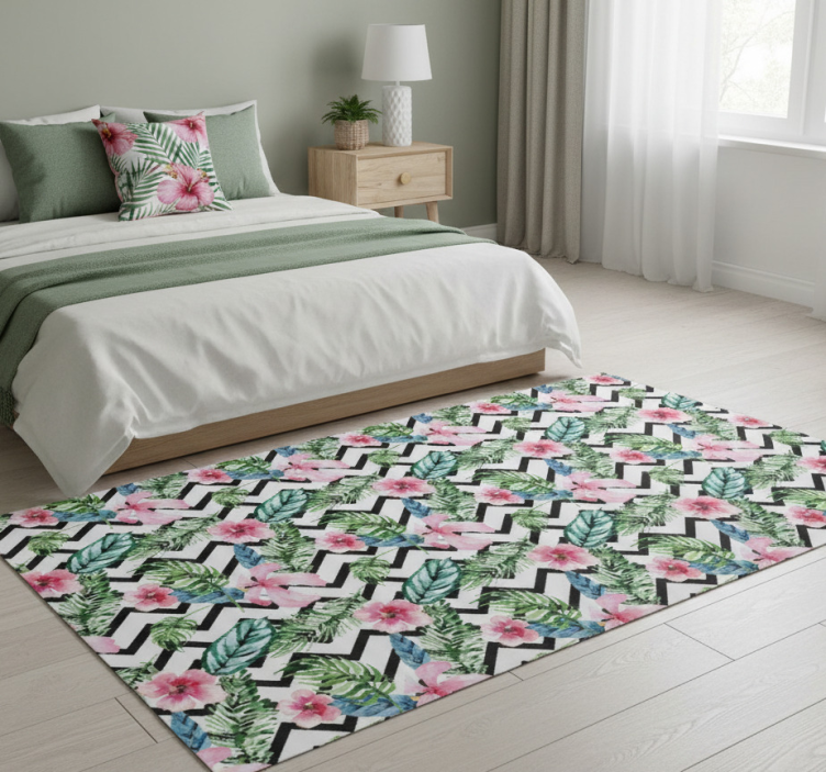 Referência: R20642O Tapete vinílico flores e plantas zigue-zague verde tropical é uma verdadeira obra de arte gráfica que transforma qualquer espaço com seu design vibrante e envolvente. Com padrões de flores e plantas dispostas de forma harmoniosa em um elegante zigue-zague, este tapete é perfeito para quem procura adicionar um toque de frescor e estilo tropical à decoração. Além de ser visualmente encantador, ele é fácil de limpar, anti derrapante e proporciona isolamento térmico, tornando-o uma escolha prática e aconchegante!