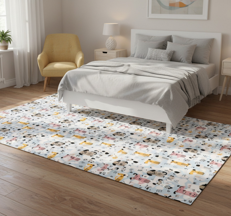 O Tapete vinílico quarto com cães multicoloridos em fundo azul é a escolha perfeita para quem deseja dar um toque especial à decoração! Com o seu design alegre e cativante, este tapete não só embeleza o espaço, mas também traz um sentimento de felicidade e descontração. É ideal para quartos de crianças ou qualquer ambiente onde se queira promover uma atmosfera positiva e acolhedora. Deixa a decoração mais divertida e única!