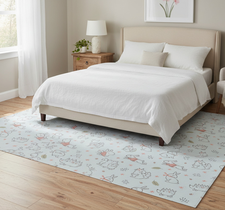 Referência: R24377O Tapete vinílico quarto flores com esquilos e coelhos é uma peça única que combina um design gráfico encantador com funcionalidade. Com flores vibrantes, esquilos e coelhos adoráveis, este tapete traz vida e alegria ao ambiente, perfeito para criar um espaço acolhedor e divertido. A sua superfície fácil de limpar e a resistência a riscos garantem que a beleza deste tapete se mantenha ao longo do tempo, enquanto o isolamento térmico proporciona conforto em qualquer estação!