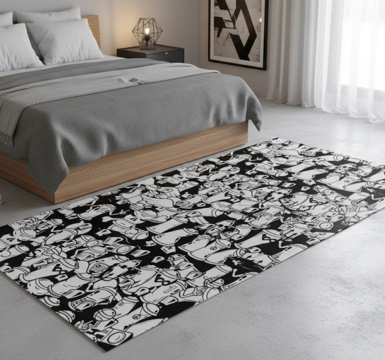 Referência: R24234Transforma o teu espaço com o Tapete vinílico quarto latas de spray preto e branco, um produto que combina design gráfico arrojado e contemporâneo. Com um padrão que evoca a arte urbana, este tapete traz à tua decoração um toque de originalidade e estilo. É fácil de limpar, anti derrapante e resistente a riscos, proporcionando tanto beleza quanto funcionalidade.